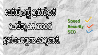 വേർഡ്പ്രസ്സ് ഇൻസ്റ്റാൾ ചെയ്തു കഴിഞ്ഞാൽ ഉടൻ ചെയ്യേണ്ട കാര്യങ്ങൾ.